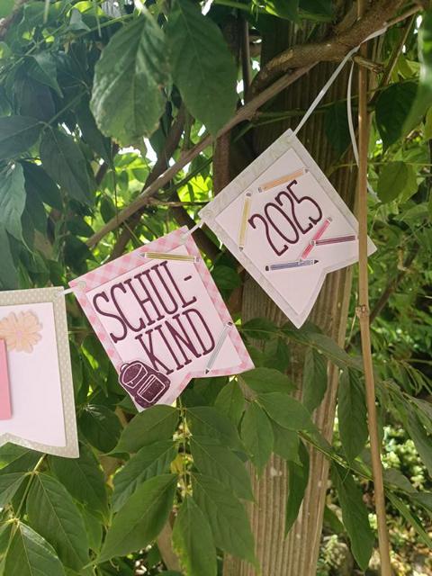 Auch Leni, meine Nichte, wurde eingeschult. Dafür habe ich ihr eine Wimpelkette mit den PARTY-WIMPELN und dem PARTY-ALPHABET gebastelt. Angefangen mit den Wimpeln aus dem DSP GEBURTSTAG MIT WILDBLUMEN und endend mit dem Stempelset SCHOOL DAYS. Mit den Wimpeln können wir eine Größe von 17,8 x 13,7 cm werkeln. Auch die Buchstaben sind ziemlich riesig, aber wenn man eine große Wimpel hat, muss man auch große Buchstaben haben!!!