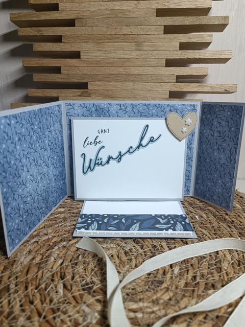 Bei meinem letzten Zoom haben wir u.a. diese Gutscheinkarte gewerkelt. Darin wurde ein langes Stück DSP geklebt und mit einer Einstecktasche versehen, um ein Geldgeschenk oder eine Gutscheinkarte hinzuzufügen. Natürlich geht auch ein persönlicher Gruß mit einem persönlich geschriebenen Gutschein. Wir freuen uns doch über die kleinen Dinge im Leben!!!