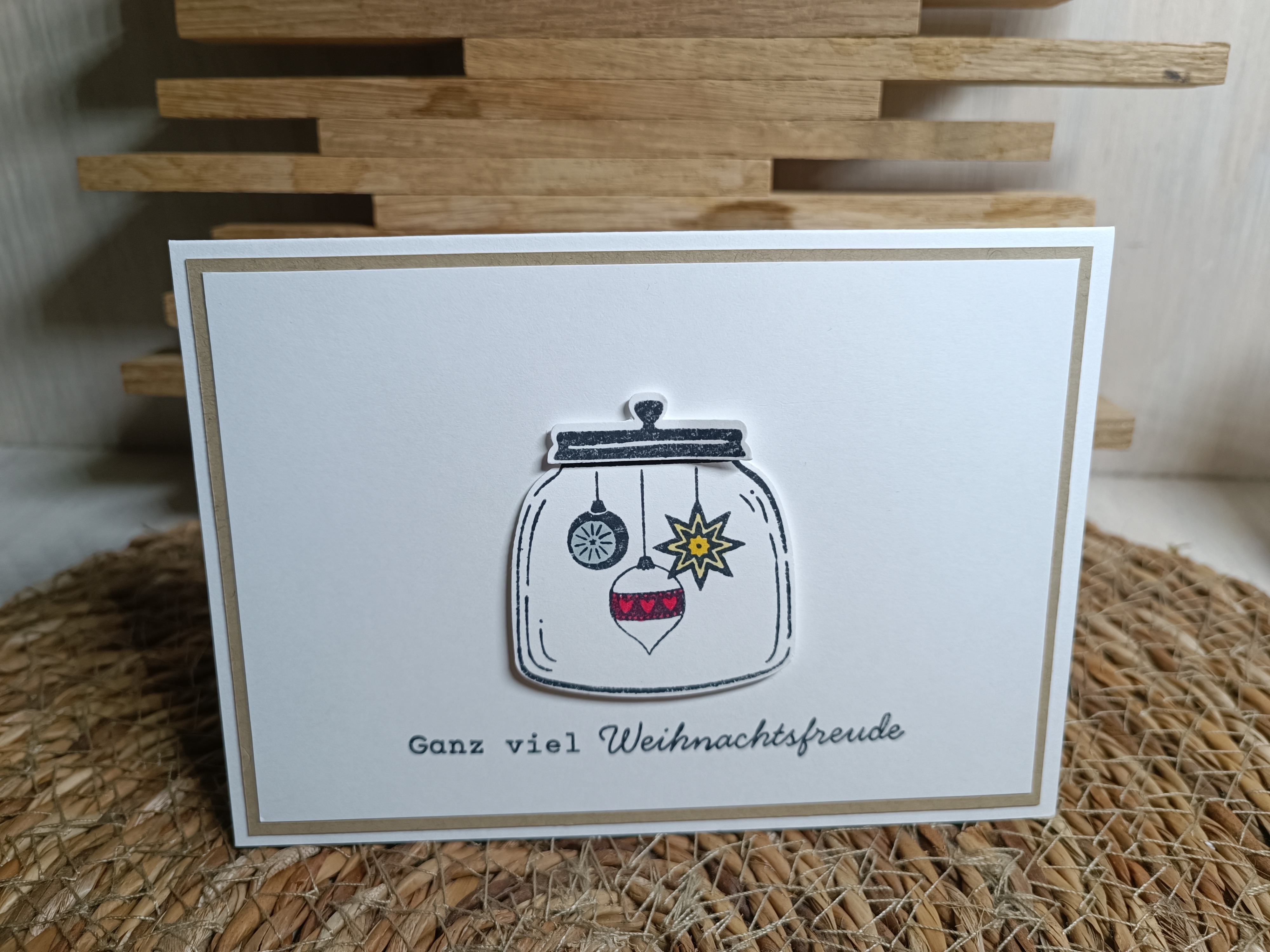 Und hier kommen die Karten mit dem Exclusiv Online Set WEIHNACHTSFREUDE IM GLAS, das auf die Handstanze SÜSSES BONBONGLAS abgestimmt ist. Wie gesagt, das Glas und der Deckel sind noch einmal anders im Abdruck wie im anderen Stempelset.