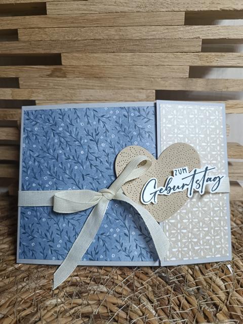 Bei meinem letzten Zoom haben wir u.a. diese Gutscheinkarte gewerkelt. Darin wurde ein langes Stück DSP geklebt und mit einer Einstecktasche versehen, um ein Geldgeschenk oder eine Gutscheinkarte hinzuzufügen. Natürlich geht auch ein persönlicher Gruß mit einem persönlich geschriebenen Gutschein. Wir freuen uns doch über die kleinen Dinge im Leben!!!