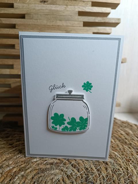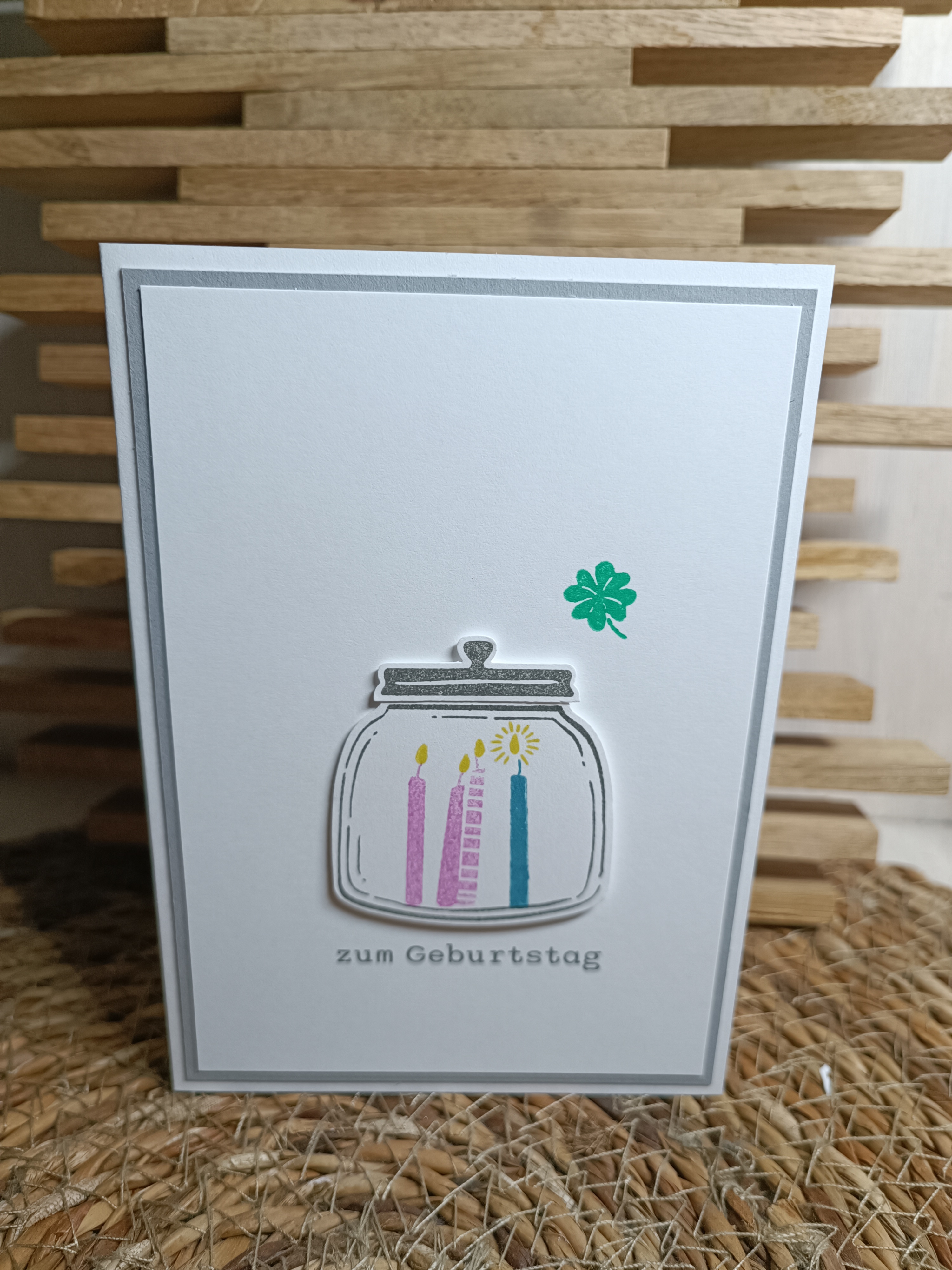 Da ist sie - die Karte mit ganz viel Liebe. Diese war die meist ausgewählte Variante zum Nachbasteln auf der Messe am Sonntag. Mal wurde noch zum Geburtstag hinzugestempelt oder auch ein Glücksklee - alles möglich mit diesem vielseitigen Set, das immer "geht" SÜSSES BONBONGLAS. Ich hatte auch ein kleines Messeangebot, denn wer dieses Set mit dem Set WEIHNACHTSFREUDE IM GLAS (verlinke ich auch gleich mal mit) bestellt, bekommt von mir als zusätzliches Geschenk zu den 10 % Shoppingvorteilen